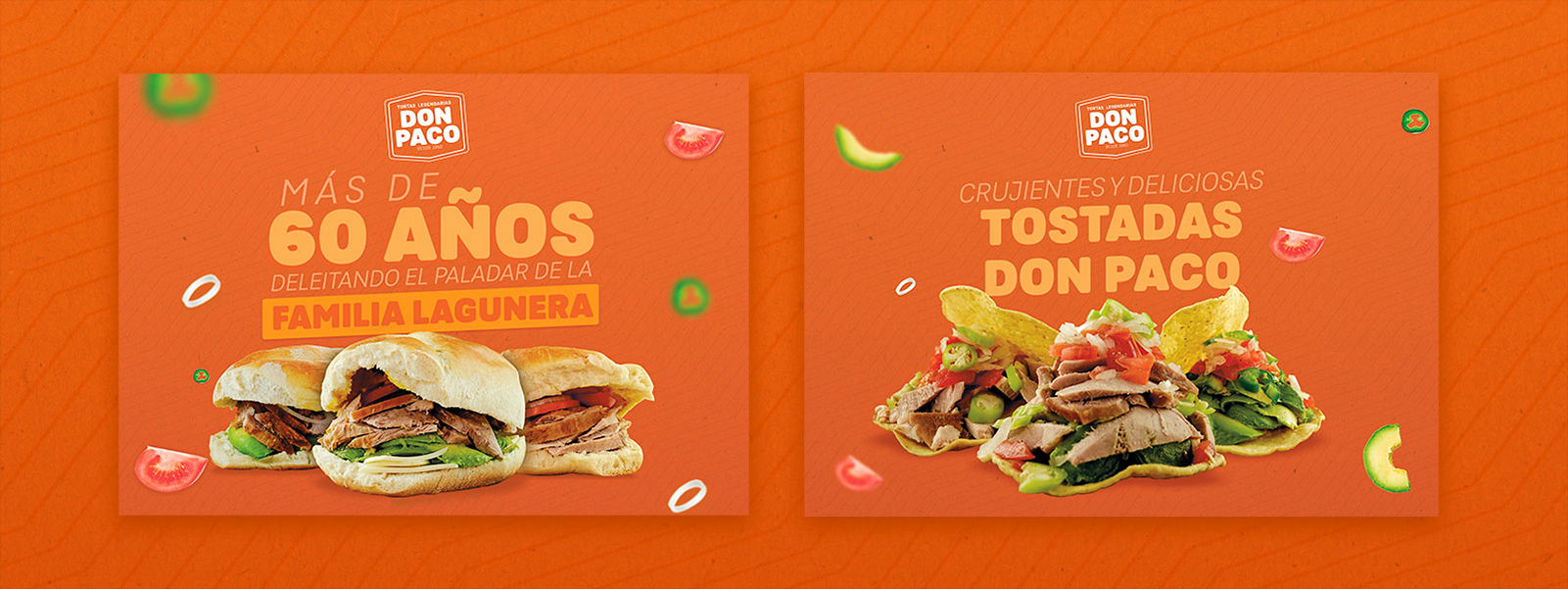 We developed a new graphic line for the Tortas Don Paco brand. A brand with more than 60 years in the market that sought to renew itself for new generations of customers without losing its essence of traditional cakes. The strategy was the minimum use of elements to maintain simplicity and cleanliness in the image. Short and forceful copies accompanied by simple and direct messages.